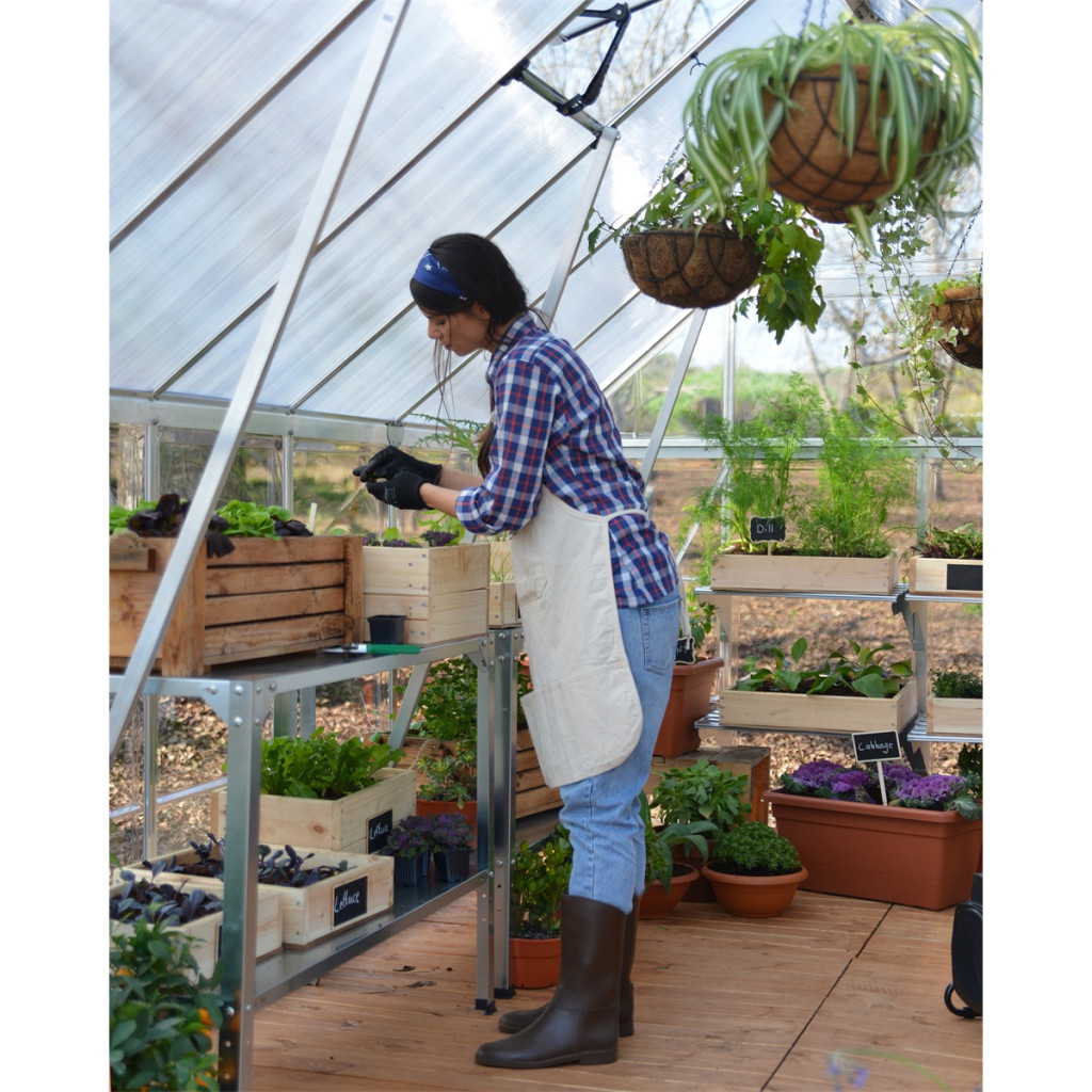 Az új, csúcsminőségű Hybrid termékcsalád üvegházaiban ötvöződik az oldalsó paneleknek köszönhetően, a letisztult és gyönyörű üvegre hasonlító kivitel, a robusztus konstrukció, valamint az egyszerű összeszerelés a tökéletes használati tulajdonságokkal. - A gyakorlatilag törhetetlen csúcsminőségű Palram polikarbonát falak és a kamrás polikarbonát tető biztosítják az üvegházban az optimális hőmérsékletet, és védik a növényzetet a közvetlen napsugárzástól. - A polikarbonát panelek egyedi és egyszerű rögzítése az alumínium profilokban, külön rögzítő elemek használata nélkül történik. - A rozsdamentes konstrukció erős alumínium profilokból áll. - A termékcsomagolás masszív és biztonságos, benne van az áttekinthető szerelési útmutató és az összes összekötő elem. - A tetőpanel dupla falú üregkamrás polikarbonát, amely védelmet biztosít az erős napsugarak ellen. - Az oldalsó panel víztiszta polikarbonát, amely 90%-os fényáteresztést biztosít még a rosszabb fényviszonyok esetén is. A nagy, pántos ajtó jobb és baloldalon is felszerelhető. A táblák egyszerűen rögzíthetők a kerületi profilokban. A csúcsminőségű konstrukció és az anyagok ellenállnak a szélnek, a hónak és a jégesőnek is. Mágneszáras a reteszelés a nyitott ajtónál. Zárható az ajtó. Egységesek a konstrukciós elemek a könnyű kezelhetőség és karbantartás érdekében. Egy vagy két darab ( 6' x 12' típusnál) nagyméretű a szellőző tetőablak. A nagyméretű 6' x 12' típusnál kiegészítő merevítők is találhatók. Magas a felszereltsége - Hatékony szellőztetés és vízelvezetés. - A nagy belmagasság biztosítja a kényelmes mozgást. - Karbantartásmentes, több tízéves az élettartama. - Kényelmes nagy ajtóval rendelkezik mágneszáras reteszeléssel. Hosszú élettartam és tartósság - Gyakorlatilag törhetetlen, csúcsminőségi polikarbonát panelekből épül fel. - Az UV szűrő megvédi az üvegház belső terét. - A 100%-kos UV védelem megvédi a paneleket a törékenységtől és besárgulástól. . Acél horganyzott alapzata van. - Egyedi konstrukció, ami erős, rozsdaálló alumínium profilokból áll. Maximális biztonság - Könnyű, törhetetlen polikarbonát panelekből áll. - Nincs üveg, amely összetörhet vagy megrepedhet. Könnyű összeszerelés és minimális szervizigény - A panelek rögzítése az alumínium profilokban egyedi megoldással további rögzítő elemek használata nélkül történik. - Az összeszerelési útmutató lépesről lépésre áttekinthető. - A Palram üvegházak egységes szerkezeti elemekkel rendelkeznek, így több év után is problémamentes a pótalkatrészek cseréje. Csomagolás - Kompakt, könnyű és nagyon tartós a csomagolása. - Ideális az e- kereskedelem útján történő megrendelésnél is. - Az egyéb típusok 2 kisebb csomagban vannak. Opcionális tartozékok Egészítse ki az üvegházát az igényeinek megfelelően, és nevelje a növényeket még hatékonyabban, könnyebben és kényelmesebben! - Automatikus ablaknyitás. - Árnyékoló - Növény rögzítők -Virágtartók -Polcok -Futónövény rögzítők - Öntözőrendszer - Rögzítési rendszer