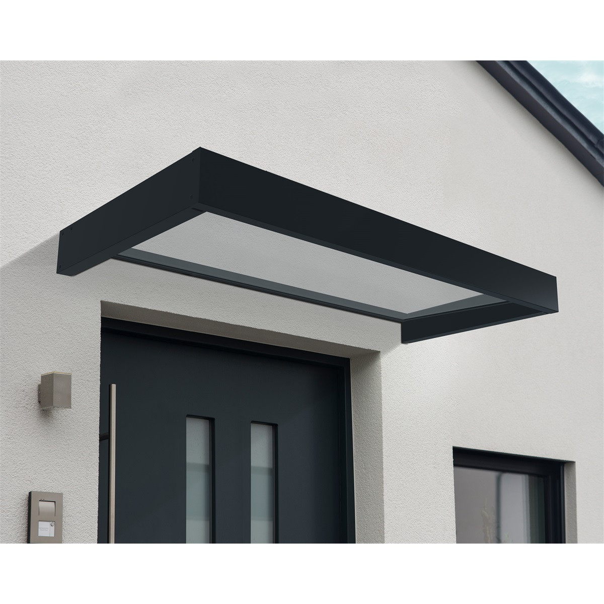 Modern és praktikus bejárati előtető nagyon egyszerű össze- és felszereléssel